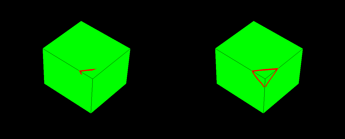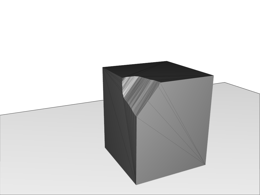 Cut Animation displays cuts to be made as animated lines on the foam surface. Once a cut has been made, the system moves to the next one. This visualisation could be used to recreate a previous object, or to instruct novices. An algorithm could be developed to calculate the actual cuts that need to be made, reducing the amount of planning needed when making an object.